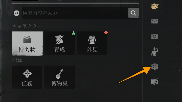 - メニューが展開され「歯車アイコン」をクリックします。