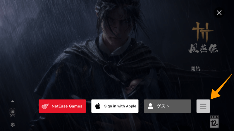- ゲームを起動し、「三本線アイコン」をクリックします。